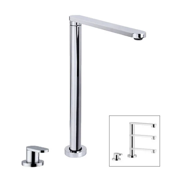 Grifo de cocina modelo Tropic de tipo monomando de doble orificio, escamoteable y diseño italiano en acero inoxidable acabado cromo brillo.