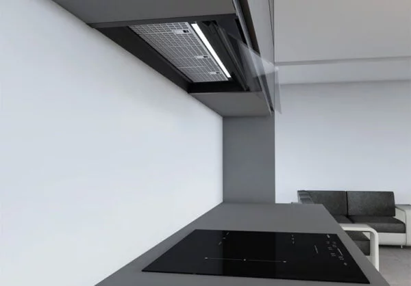 La campana integrada Hit de Frecan fabricada en color negro mate se encastra totalmente bajo el mueble. ¡Dale un toque elegante a tu cocina!